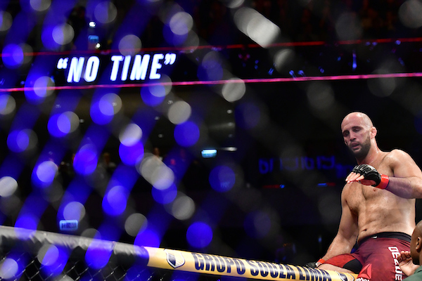 Mas foi o machucado no rosto de Raulian Paiva que encerrou a luta - Leandro Bernardes