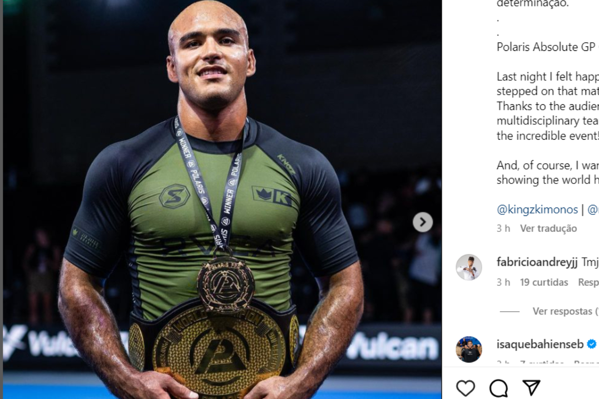 “Campeão do GP Absoluto do Polaris. Ontem à noite senti a felicidade, a gratidão e a paz retornarem quando pisei naquele tatame. Obrigado ao público pela excelente energia, ao meu time multidisciplinar que está sempre comigo e ao Polaris pelo incrível evento! E, claro, não poderia deixar de parabenizar ao Fabrício Andrey por mostrar ao mundo sua garra e determinação”, escreveu o brasileiro.