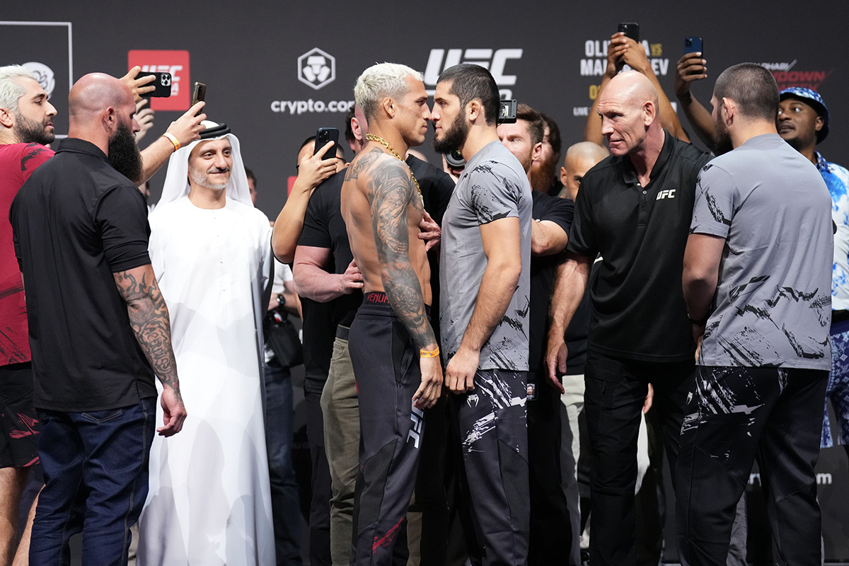 Após um ano do primeiro confronto, Islam e Charles protagonizarão uma revanche, também em Abu Dhabi (EAU), que coloca o cinturão dos pesos-leves em jogo. O aguardado duelo lidera o card do UFC 294, agendado para o dia 21 de outubro. No ‘co-main event’, Paulo Borrachinha e Khamzat Chimaev medem forças pela categoria dos pesos-médios (84 kg).