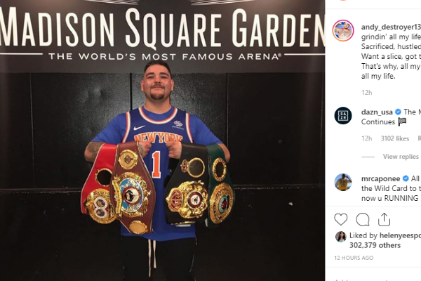Com a vitória sobre Joshua, Ruiz agora é campeão em quatro das cinco principais organizações de boxe da atualidade: Federação Internacional de Boxe (IBF), Organização Mundial de Boxe (WBO), Associação Mundial de Boxe (WBA) e Organização Internacional de Boxe (IBO). O quinto cinturão, do Conselho Mundial de Boxe (WBC), se encontra hoje nas mãos de Deontay Wilder.