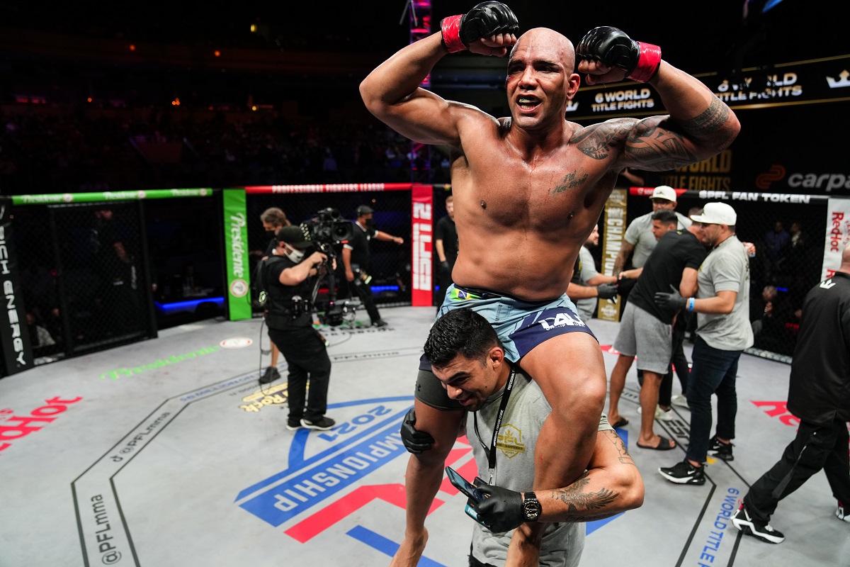 Antônio ‘Cara de Sapato’ foi um dos últimos contratados para essa temporada do PFL. No início deste ano, o brasileiro foi demitido do UFC, decidindo se aventurar em outra organização e, ao que parece, acertou em cheio. Na final do torneio dos meio-pesados, o faixa-preta de jiu-jitsu mostrou toda a sua técnica na arte suave para finalizar Mathin Hamlet, ainda no primeiro round, e ficar com o cinturão.