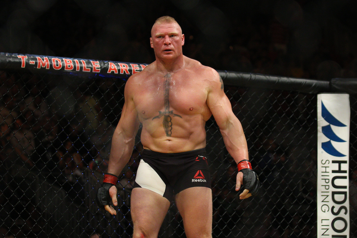 LAS VEGAS, NV - JULY 9: Brock Lesnar battles Mark Hunt in their UFC Light Heavyweight bout during the UFC 200: Tate vs. Nunes event at T-Mobile Arena on July 9, 2016 in Las Vegas, Nevada, United States. (Photo by Rigel Salazar/PxImages)