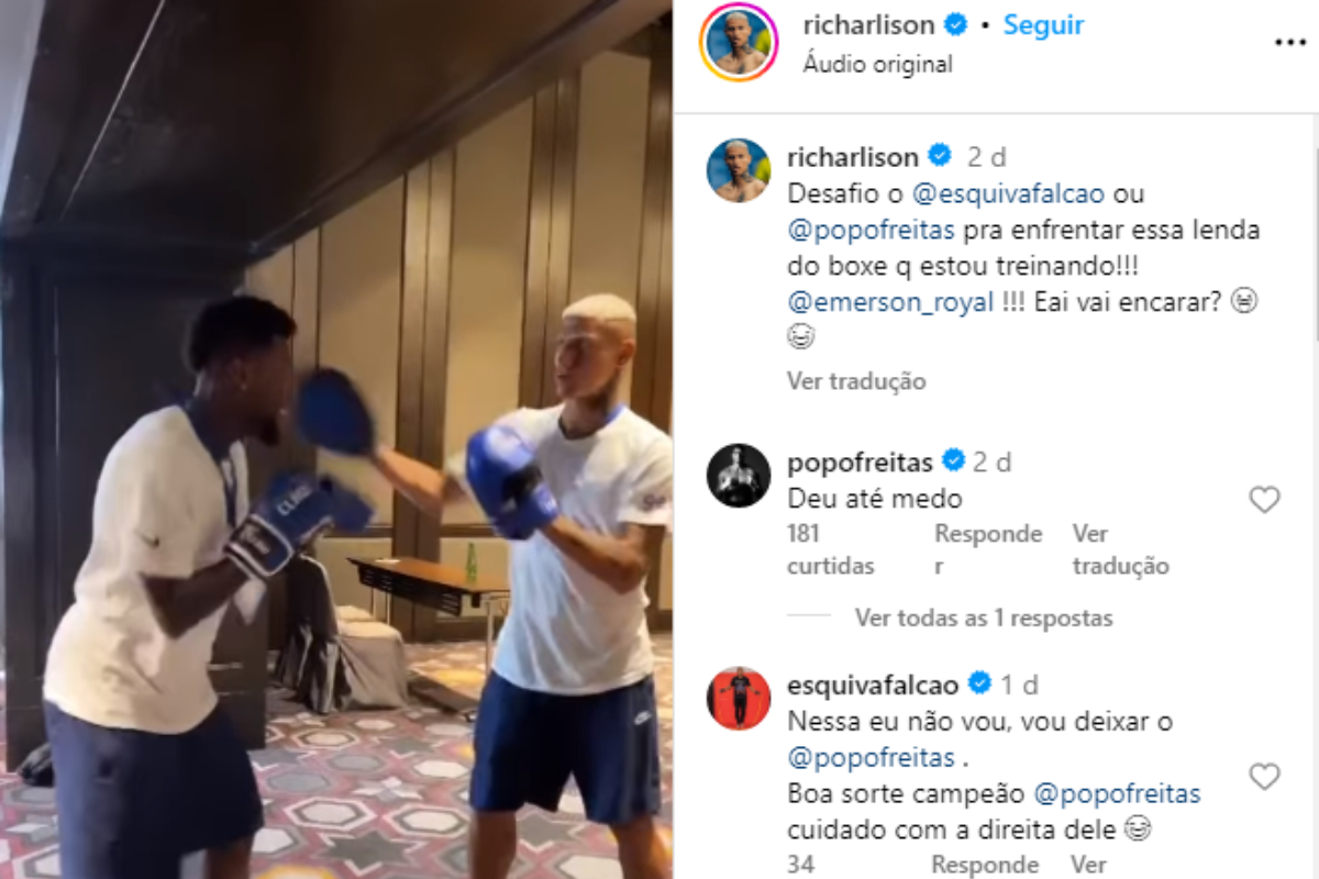 Não demorou para que o desafio chegasse aos boxeadores. Nos comentários da publicação feita por Richarlison, Popó e Esquiva entraram na brincadeira, mas rejeitaram a proposta feita pelo jogador da Seleção Brasileira.