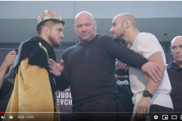 Enquanto seu parceiro de ‘Fight Ready’ e Marlon se encaravam, Bulldoguinho provocou o brasileiro ao dizer: “Vai tomar pressão de peso-mosca”, em uma clara referência a Cejudo, atual campeão da categoria até 57 kg. Logo em seguida, ‘Magic’, como é conhecido, retrucou a alfinetada e disparou: ‘Quem é você? Vem aqui para ajudar ele (Henry)’.