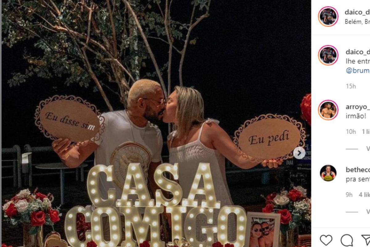 Na última quarta-feira (17), Deiveson utilizou suas redes sociais (veja abaixo ou clique aqui) para postar os registros da cerimônia realizada na Estação das Docas, um dos principais pontos turísticos de Belém. Ao contrário do que se pode imaginar, a iniciativa não foi de ‘Daico’ e sim de Bruna, que entrou em contato com uma empresa especializada em preparar surpresas românticas.