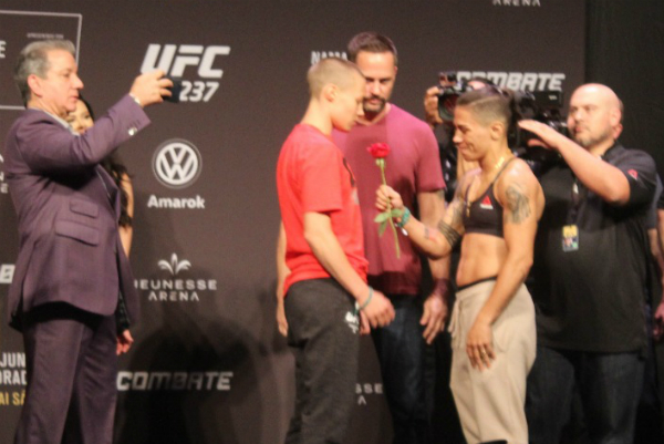 Realizada nesta sexta-feira (10), a pesagem aberta ao público contou com as últimas encaradas entre os atletas antes dos duelos que irão compor o card do UFC 237, evento programado para este sábado na cidade do Rio de Janeiro. E para a atração principal da noite, uma bela atitude da desafiante Jéssica ‘Bate-Estaca’ Andrade encerrou o clima de rivalidade que se iniciava entre as atletas.