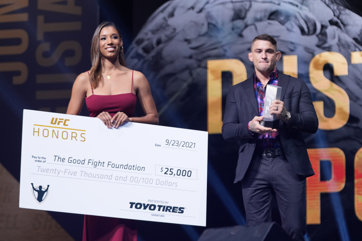 Por fim, Dustin Poirier, peso-leve (70 kg) do UFC, recebeu a inédita menção honorária pela criação e investimento em sua ONG ‘The Good Fight Foundation’. Em seu discurso, o atleta relembrou a importância de sua fundação, criada em 2018, e recebeu uma doação de 25 mil dólares dos patrocinador do show.