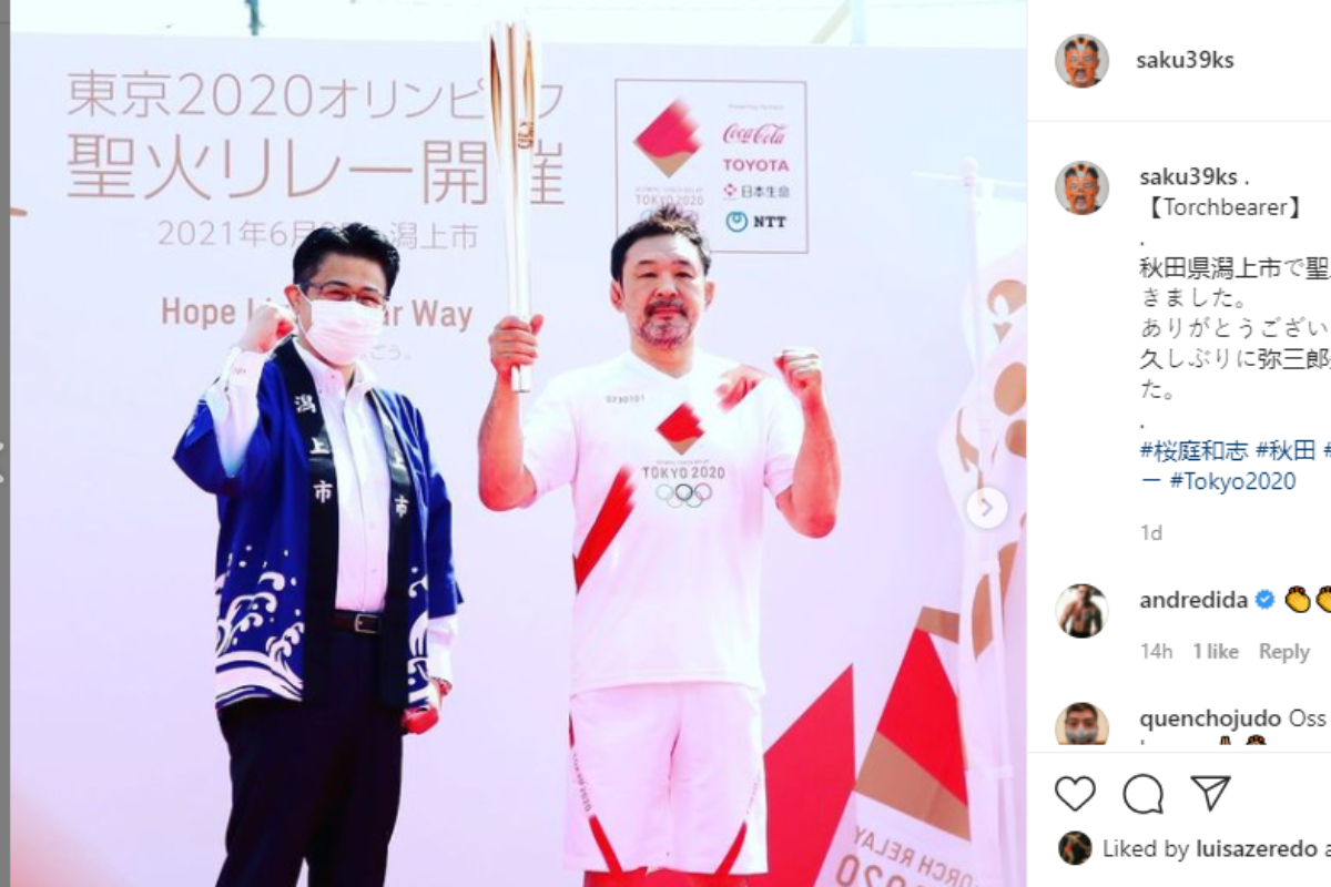 Ex-lutador de MMA, Kazushi Sakuraba recebeu uma bela homenagem nesta semana. Aos 51 anos, a lenda do esporte foi homenageada no Japão com o direto de carregar a tocha olímpica em seu país. O registro foi divulgado pelo próprio atleta em suas contas em redes sociais (veja abaixo ou clique aqui).