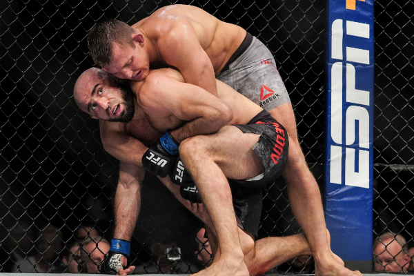 Ian Heinisch (por cima) encara Gerald Meerschaert no UFC 250 – Rigel Salazar/ PXImages