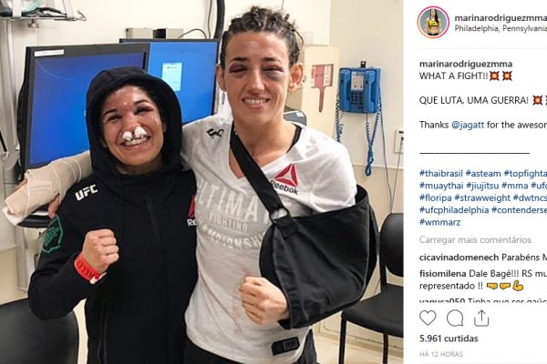 No entanto, a rivalidade ficou apenas dentro do octógono. Fora dele, as atletas se encontraram após o duelo em um hospital local e fizeram questão de posar juntas para uma foto. O registro (veja abaixo ou clique aqui), compartilhado por Marina, chamou a atenção pelos hematomas estampados no rosto das atletas, uma prova de que o combate foi emocionante.