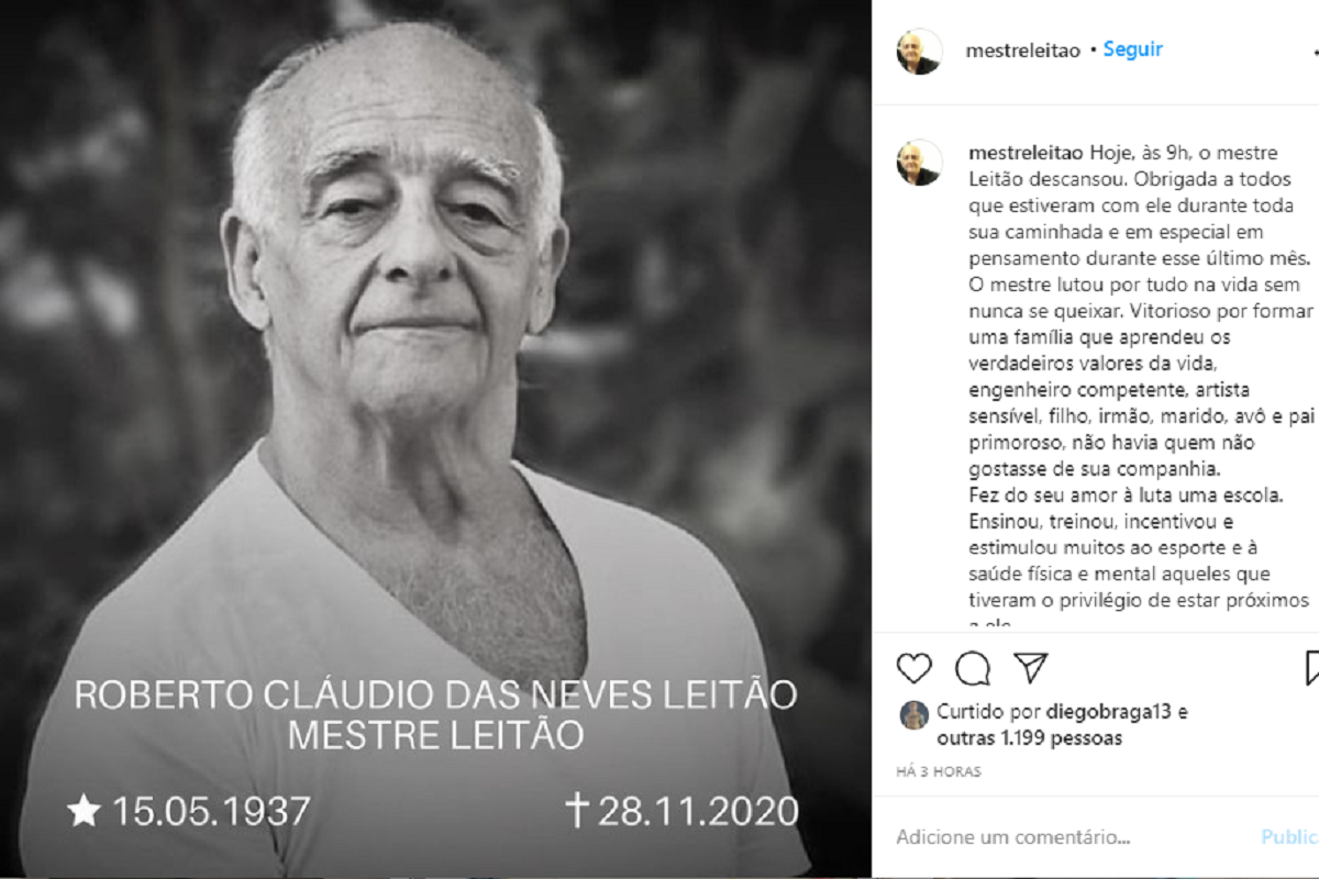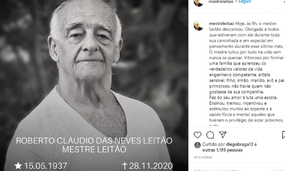 Uma notícia triste para o mundo das lutas foi anunciada na manhã deste sábado (28). Roberto Cláudio das Neves Leitão, conhecido como Mestre Leitão, faleceu aos 83 anos, vítima de complicações provocadas pela COVID-19. Internado desde outubro no Hospital Vitória, no Rio de Janeiro, ‘Seu Leitão’ não resistiu após ter grande parte do seu pulmão comprometido. A notícia foi divulgada pela família, através das redes sociais (veja abaixo ou clique aqui).
