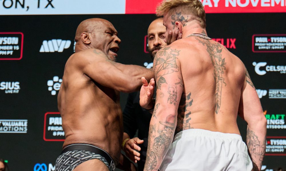 O clima esquentou de vez no último encontro entre Mike Tyson e Jake Paul antes antes da luta de boxe desta sexta-feira (15). Na noite de quinta-feira, durante a tradicional encarada da cerimônia de pesagem, o ex-campeão mundial desferiu um tapa no rosto do youtuber que virou lutador (veja abaixo ou clique aqui).