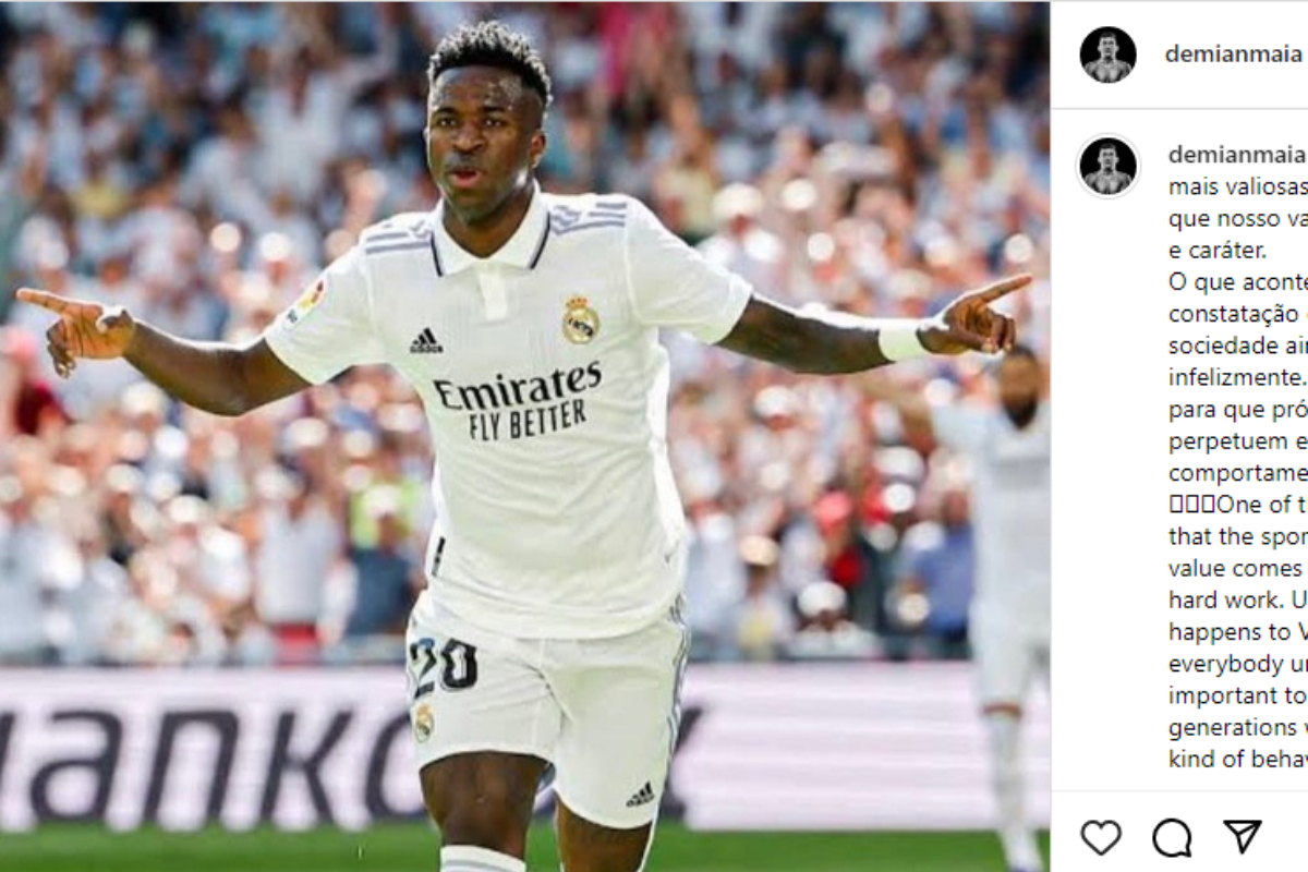 Após o jogo, Vini Jr foi às redes sociais reclamar de, mais uma vez, ter sido alvo de insultos racistas por parte de torcedores rivais no campeonato espanhol, e cobrar atitude por parte de ‘LaLiga’. Apesar do apoio recebido, o brasileiro viu o presidente Javier Tebas Medrano vir a público contemporizar e acusá-lo de não saber lidar com a situação – publicação que foi criticada por fãs e parte da imprensa, além de prontamente respondida pelo atacante da Seleção Brasileira, de forma firme.