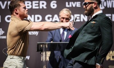 / 5 anos atrás‘Canelo’ Alvarez e Caleb Plant trocam socos após encarada tensa em coletiva de imprensa