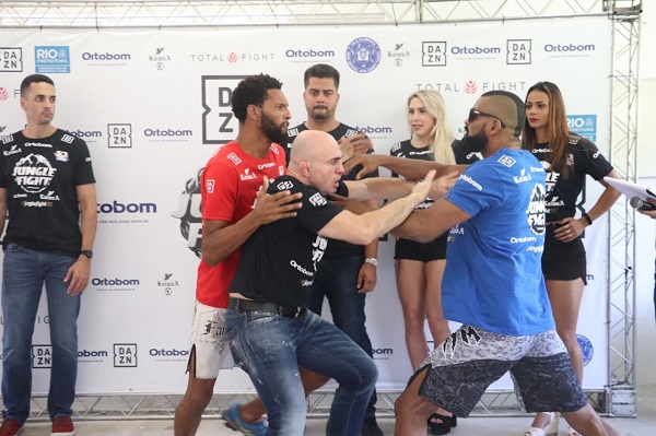 Está tudo confirmado para o Jungle Fight 102, que acontece neste sábado (15), na Vila Olímpica de Mato Alto, em Jacarepaguá (RJ). Nesta sexta-feira, aconteceu a pesagem oficial da edição e todos os atletas confirmaram suas presença no card em suas respectivas categorias. O único momento mais tenso do evento foi quando Anderson ‘Astro da Maldade’ e Paulo Henrique Laia se estranharam e tiveram que ser separados.