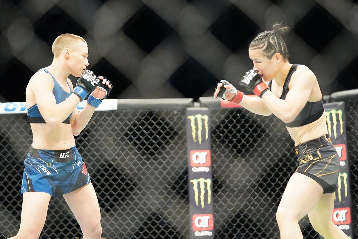 Rose Namajunas atua no MMA profissional desde 2013 e conquistou o título da divisão pela primeira vez em 2017, quando superou Joanna Jedrzejczyk e, na sequência, manteve sua coroa em revanche com a polonesa, dessa vez em combate que aconteceu em 2018. No entanto, em 2019, a ‘Thug’ foi superada pela brasileira Jéssica ‘Bate-Estaca’ e perdeu o cinturão, o recuperando somente em abril deste ano, quando superou Zhang.