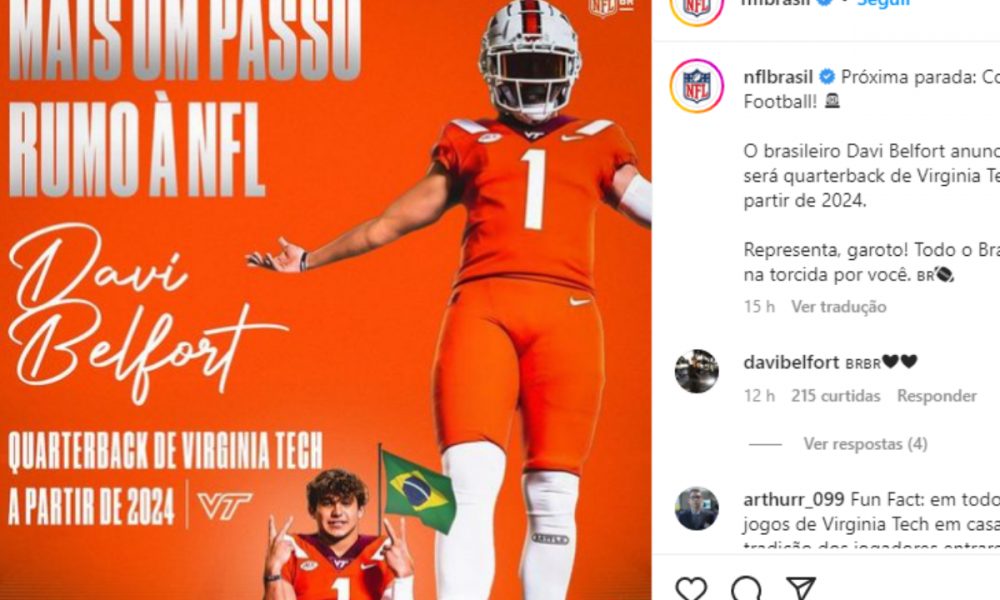 A cerimônia, que contou com a cobertura inclusive da imprensa, algo comum nos Estados Unidos para grandes promessas do esporte no ensino médio, como é o caso do quarterback brasileiro, foi gravada e compartilhada também pela página da NFL (liga profissional de futebol americano) dedicada ao público brasileiro (veja abaixo ou clique aqui). Ao lado de seus pais, Vitor Belfort e Joana Prado, e das irmãs Vitória e Kyara, Davi fez um breve suspense antes de pegar o boné de Virginia Tech e anunciar sua decisão de integrar o time da faculdade a partir de 2024.