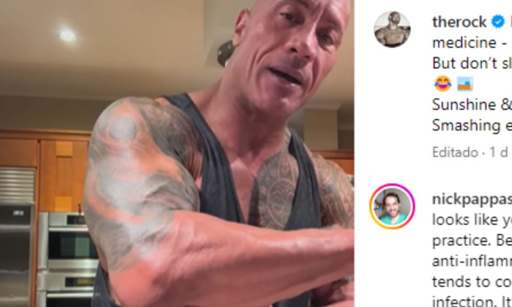 Em sua conta oficial no ‘Instagram’, o ator exibiu um inchaço considerável em seu cotovelo direito – região lesionada durante as filmagens (veja abaixo ou clique aqui). Apesar do acidente, ‘The Rock’ reagiu com bom-humor à situação e, inclusive, pediu dicas de possíveis tratamentos aos seus fãs. No último mês, Dwayne Johnson já havia viralizado por conta do filme pela semelhança física com Mark Kerr, demonstrada em uma cena divulgada nas redes sociais.
