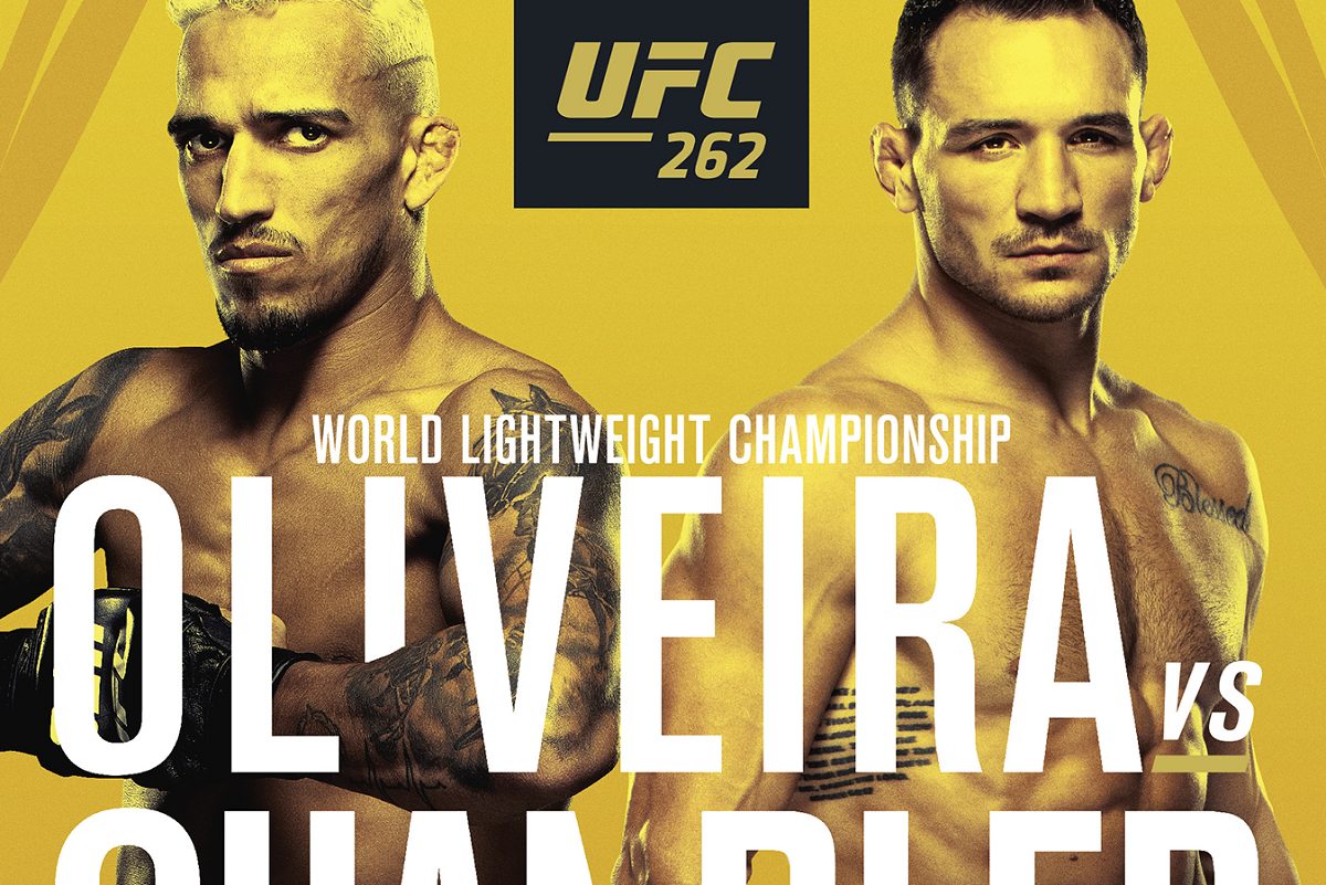 O UFC 262, que acontece no dia 15 de maio, está cercado de importância para o Brasil. Charles ‘Do Bronx’ encara Michael Chandler, na luta principal do show, pelo cinturão do peso-leve (70 kg), que está vago desde a aposentadoria de Khabib Nurmagomedov. A menos de um mês para o duelo, o Ultimate, através de suas redes sociais (clique aqui ou veja abaixo), divulgou o pôster oficial do show.