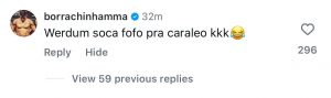 Outro que aproveitou para provocar foi Paulo Borrachinha. Em um comentário já apagado na publicação da Ag Fight no ‘Instagram’, o lutador mineiro – desafeto de Fabrício Werdum – zombou da participação do ex-campeão peso-pesado do UFC na briga generalizada.