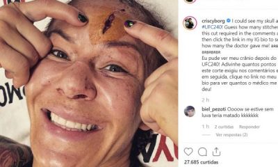 / 7 anos atrásCris ‘Cyborg’ exibe corte profundo na testa após luta do UFC 240; veja