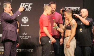 / 7 anos atrásJéssica ‘Bate-Estaca’ rouba a cena em pesagem ao presentear rival com uma flor