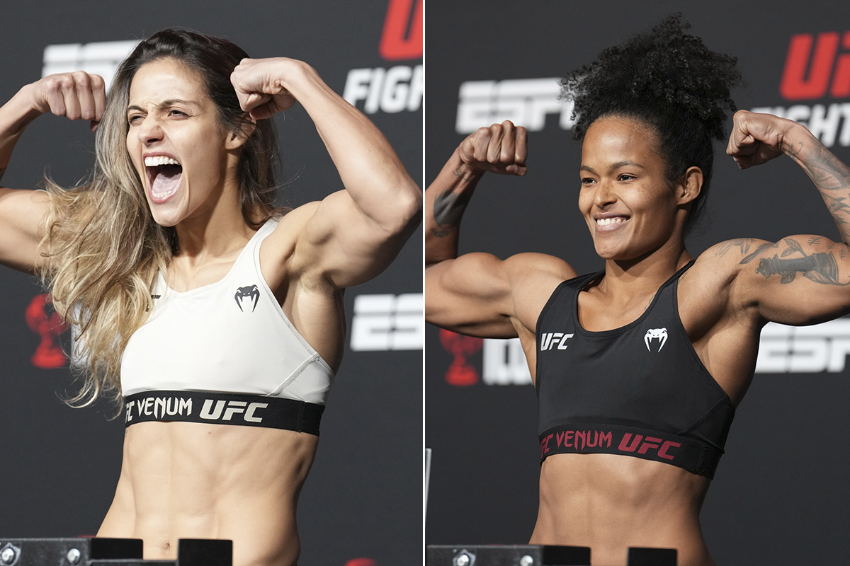 O destaque ficou por conta das brasileiras Poliana Botelho e Karine Killer, que se enfrentam no card principal do evento, em disputa válida pela categoria dos pesos-moscas. Experiente, a atleta da equipe Nova União cravou 56,9 kg, cerca de 200 gramas a mais do que a estreante adversária – Karine assinou contrato com o UFC após sua vitória no programa Contender Series.