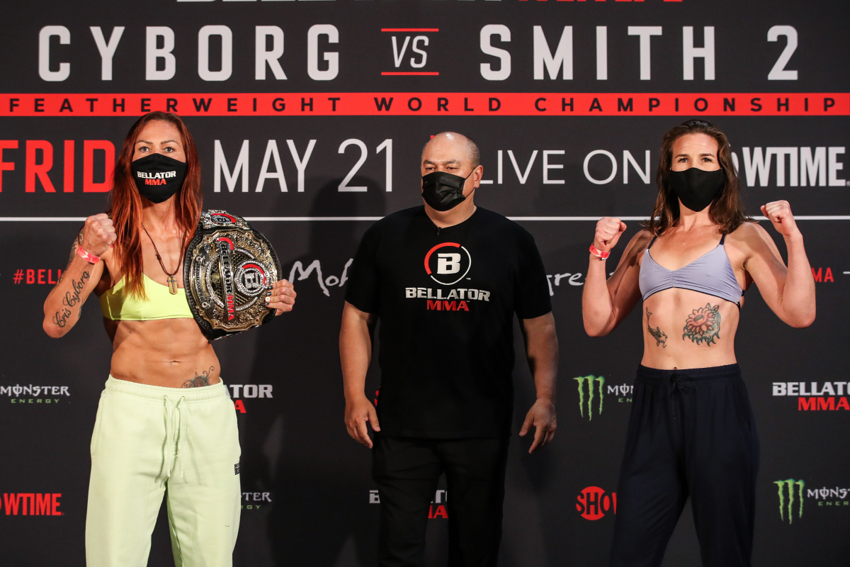 Nesta quinta-feira (20), foi realizada a pesagem oficial do Bellator 259, que acontece nesta sexta-feira em Connecticut (EUA). As estrelas da luta principal do evento, Cris ‘Cyborg’ e Leslie Smith, que vão medir forças para ver quem fica com o cinturão do peso-pena (66 kg) da organização, passaram sem problemas pelo teste da balança.