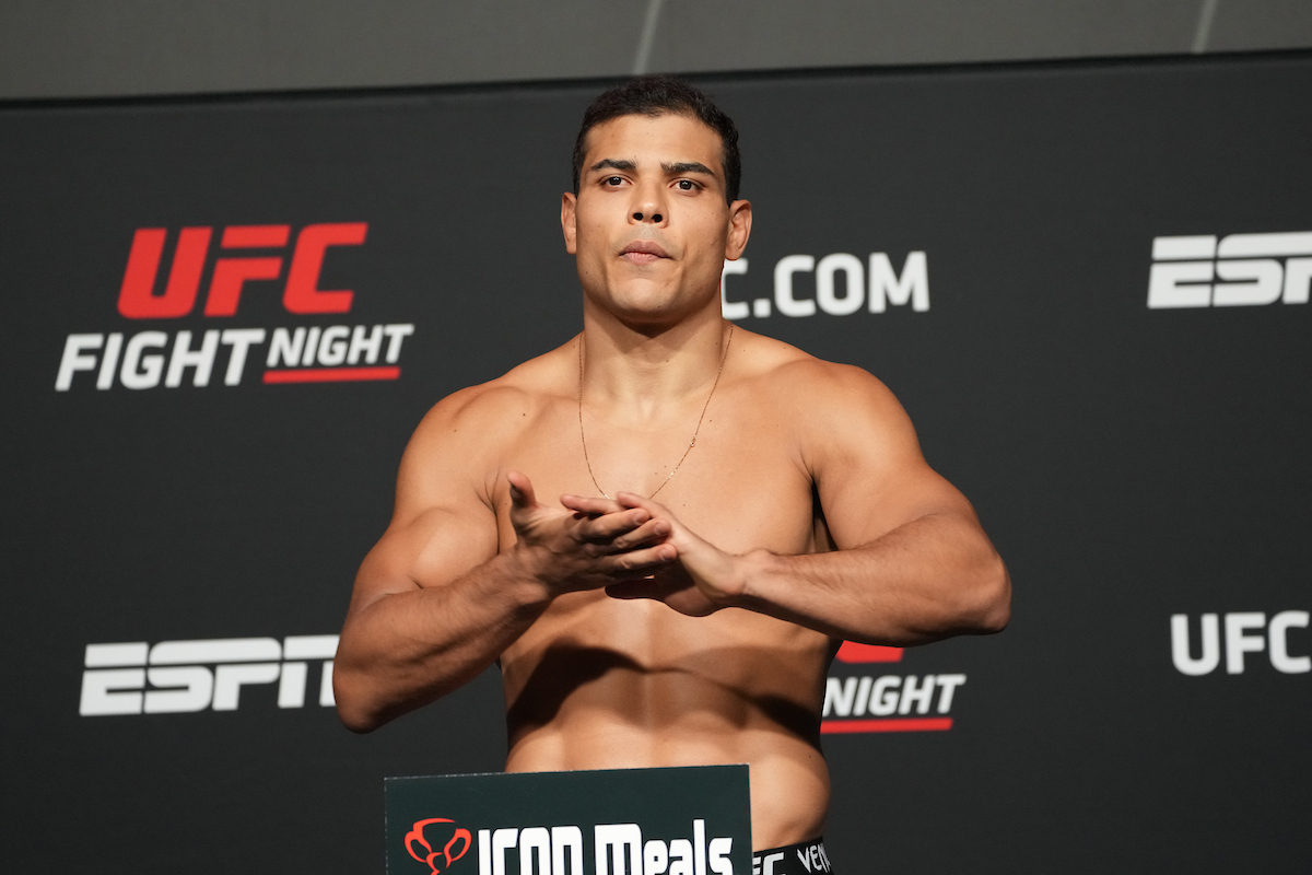 Ex-desafiante ao título peso-médio (84 kg), Paulo ‘Borrachinha’ precisou cortar menos peso desta vez, já que enfrentará o russo Azamat Murzakanov na divisão dos meio-pesados (93 kg). Ao subir na balança da pesagem oficial nesta sexta-feira, o lutador mineiro cravou 93 kg, mesma marca registrada pelo seu oponente.
