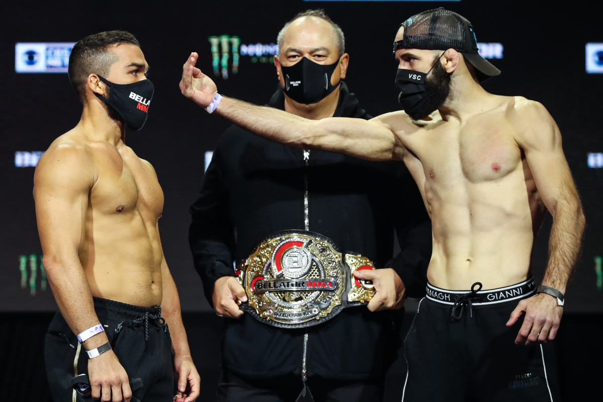 Responsáveis por liderar o card do Bellator 252, Patrício ‘Pitbull’ e Pedro Carvalho cumpriram com suas obrigações e ficaram dentro do limite exigido para disputas de título na divisão dos penas na pesagem oficial realizada nesta quarta-feira (11), confirmando a luta principal do evento. Válido pelo cinturão até 66 kg da liga, o duelo entre o brasileiro e o português também dá ao vencedor uma vaga na semifinal do Grand Prix da categoria, promovido simultaneamente pela organização americana.