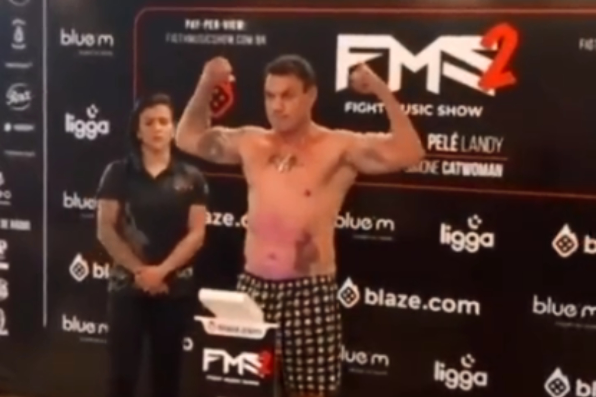 Popó, que na primeira edição do ‘FMS’ duelou com o youtuber Whindersson Nunes, subirá novamente no ringue, desta vez para medir forças com o veterano do Vale Tudo/MMA José ‘Pelé’ Landy, na luta principal do evento deste domingo (25), que será realizado na Arena da Baixada, estádio do Club Athletico Paranaense, em Curitiba. Na pesagem deste sábado, o baiano, um dos primeiros a se apresentar, marcou 74,8 kg na balança e confirmou sua luta contra o cubano naturalizado brasileiro, que pesou 200 gramas a mais, chegando no limite estabelecido para o confronto de peso-casado (até 75 kg).