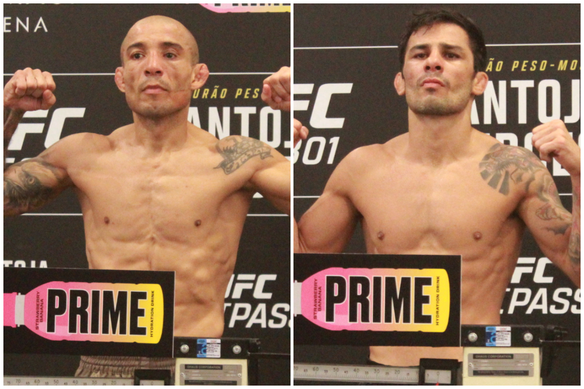 Alexandre Pantoja e José Aldo deram um susto em seus fãs na pesagem oficial do UFC 301, realizada nesta sexta-feira (3), no Rio de Janeiro. O campeão do peso-mosca (57 kg) e a lenda do MMA precisaram utilizar o biombo e tirar a roupa para passarem pela balança (veja abaixo ou clique aqui e aqui), confirmando assim suas lutas. Além dos destaques do show, os demais 26 atletas escalados para atuar no card cumpriram a obrigação pré-luta.