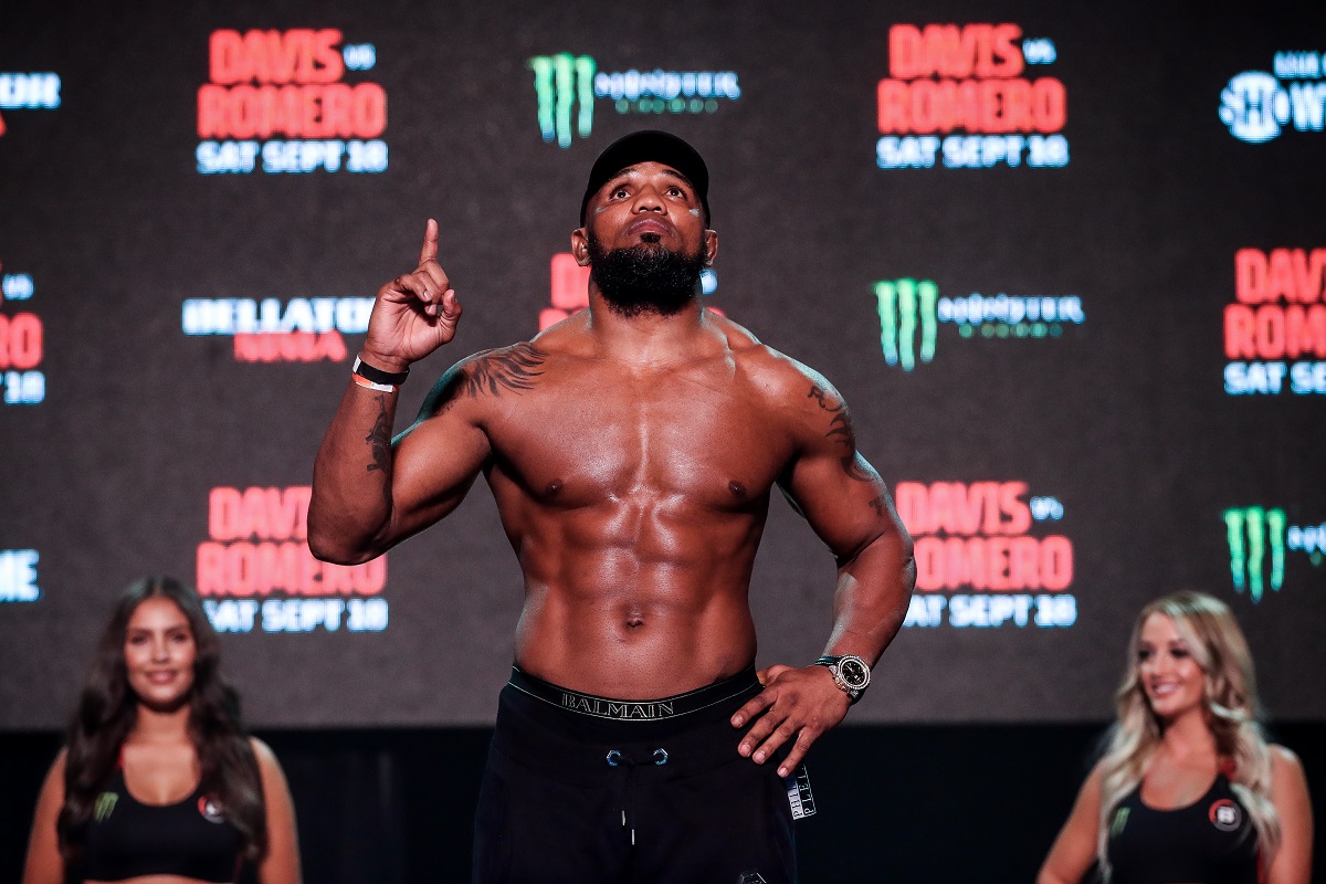 Apesar de ganhar fama no MMA por conta de sua trajetória de sucesso pelo peso-médio (84 kg) do UFC, Romero, de 44 anos, decidiu subir para os meio-pesados (93 kg) quando assinou com o Bellator. Para a estreia na nova casa, o cubano se apresentou com 93,1 kg, enquanto Davis, seu oponente, alcançou a marca de 93,4 kg.