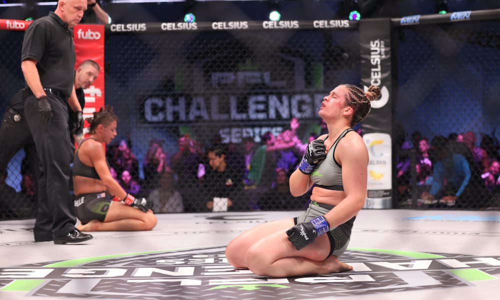 Na última sexta-feira (3), na Flórida (EUA), foi realizada a segunda edição do ‘PFL Challenger Series’, que tem o intuito de conceder contratos para os atletas que mais se destacarem nos confrontos – como uma espécie de ‘Contender Series’, já tradicional no UFC. Única brasileira presente no evento, Evelyn Martins brilhou ao derrotar Jeslen Mishelle por finalização no segundo assalto. No entanto, a performance não foi suficiente para garantir um vínculo da peso-pena (66 kg) com o PFL.