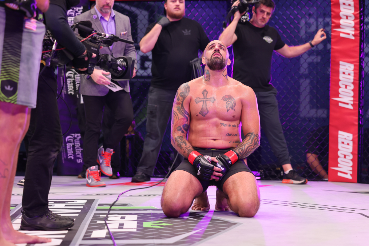 ORLANDO, FL - February 10: Danilo Marques reacts to winning via rear naked choke against Ras Hylton during week 3 of the PFL Challenger Series on February 10, 2023 at Universal Studios in Orlando, Florida. (Photo by Aaron Litz/PxImages)