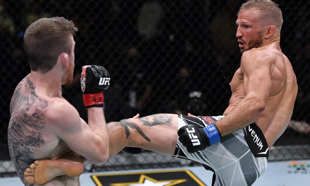 Depois de retornar de um hiato de mais de dois anos, TJ Dillashaw corre o risco de se ausentar dos octógonos por mais um longo período. O ex-campeão peso-galo (61 kg) é um dos dois atletas que atuaram no card do UFC Vegas 32 que receberam 180 dias de suspensão médica preventiva pela Comissão Atlética de Nevada. A informação foi divulgada no site ‘MixedMartialArts.com’.