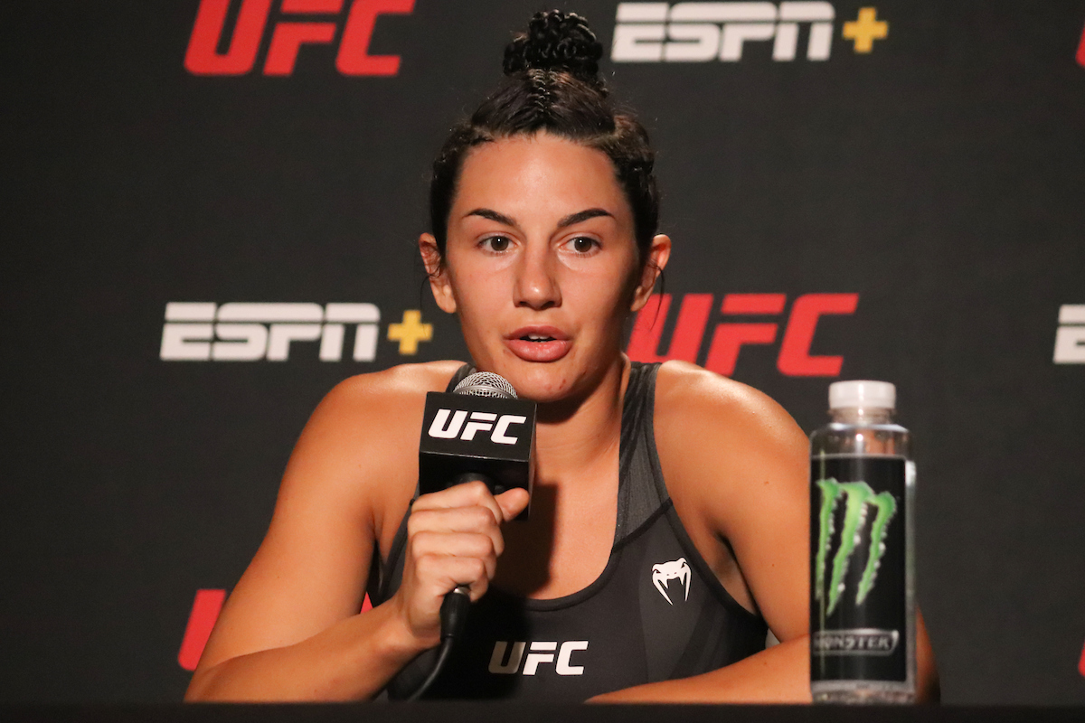 “Descobri há dois segundos que ganhei o bônus de ‘performance da noite’ e isso é bem surreal. Corri um grande risco para obter uma grande recompensa e tenho agradecer muito à minha equipe, meu marido e minha família, porque disseram que eu teria que ir à falência por um tempo para tirar algo de bom disso. Me sinto muito feliz”, declarou a promessa do UFC, antes de completar.
