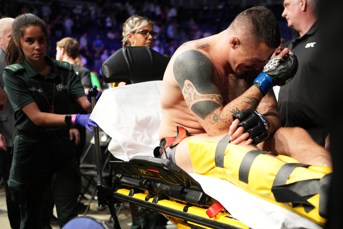O confronto entre os pesos-pesados prometia estremecer a ‘O2 Arena’, sede do UFC Londres, mas acabou de forma precoce e inusitada. O início da movimentação até chegou a animar os torcedores presentes, que viram Aspinall partir para cima do adversário, tentando encurralá-lo na grade. Mas durante os primeiros golpes trocados, após um chute conectado pelo inglês e defendido por Blaydes, a jovem promessa britânica foi à lona com muitas dores, decretando o fim da disputa.