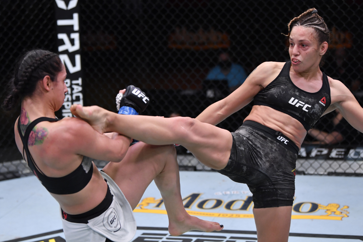 O card preliminar do UFC 255, evento realizado neste sábado (21) em Las Vegas (EUA), contou com apenas uma brasileira em ação. Embalada por duas vitórias seguidas no octógono, Ariane Lipski mediu forças com Antonina Shevchenko, atual número 15 do ranking dos pesos-moscas (57 kg). No entanto, a atleta do Quirguistão se mostrou um desafio inabalável no octógono.