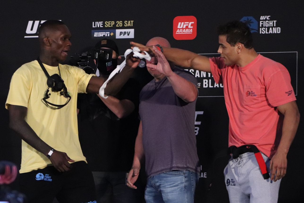 Protagonistas da última encarada realizada nesta sexta-feira (25), na cerimônia final antes do card do UFC 253, Israel Adesanya e Paulo ‘Borrachinha’ se estranharam ao ficarem frente a frente. E tudo começou após uma provocação do brasileiro.