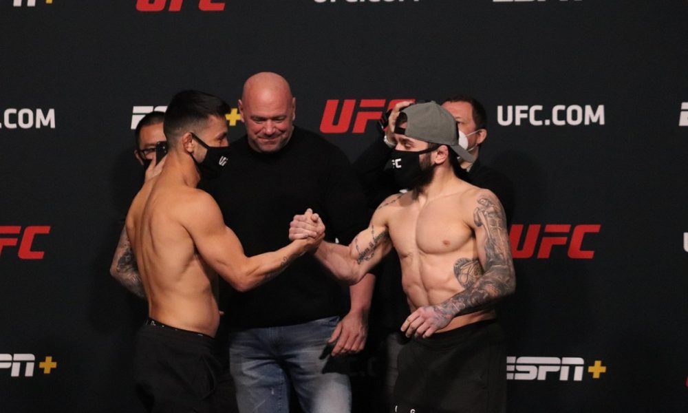 Pelo peso-galo (61 kg), Pedro Munhoz e Jimmie Rivera disputam uma revanche que tem tudo para colocar o vencedor entre os cinco melhores da categoria. Atualmente, o brasileiro se encontra em oitavo no ranking da divisão e o americano é dono da nona posição. O primeiro duelo entre a dupla aconteceu em 2015, no Brasil, e, mesmo atuando em casa, o paulista foi derrotado na decisão dividida dos juízes. Seis anos depois, os lutadores se cruzam novamente e não são mais os mesmos. Hoje, Pedro e Rivera são realidade nos galos do UFC. Os atletas não só enfrentaram, como também venceram oponentes de alto nível. O brasileiro, inclusive, já integrou o top-5.