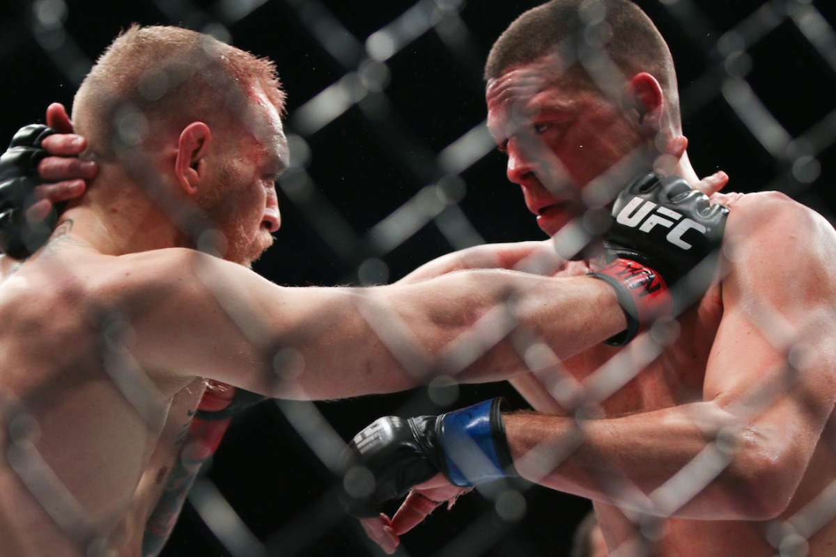 Os rivais Conor McGregor e Nate Diaz estão empatados no MMA. Na primeira luta, realizada em 2016, o ‘bad boy’ assumiu o combate em cima da hora e, sem ter tempo de fazer a preparação adequada para atuar, finalizou o astro irlandês no segundo round. Na revanche, que aconteceu no mesmo ano, ‘Notorious’ aplicou diversos knockdowns no veterano e abriu vantagem na pontuação, mas se cansou e, aos poucos, viu o desafeto crescer no confronto.