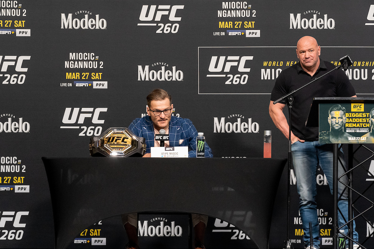 O atual momento do peso-pesado do UFC está movimentado e incertezas pairam no ar. Com o imbróglio envolvendo Dana White, Jon Jones, Francis Ngannou, Ciryl Gane e Derrick Lewis, o veterano Stipe Miocic está esquecido e segue sem definição quanto ao seu futuro no MMA. Sendo assim, o líder da organização comentou a respeito do ex-campeão da categoria.