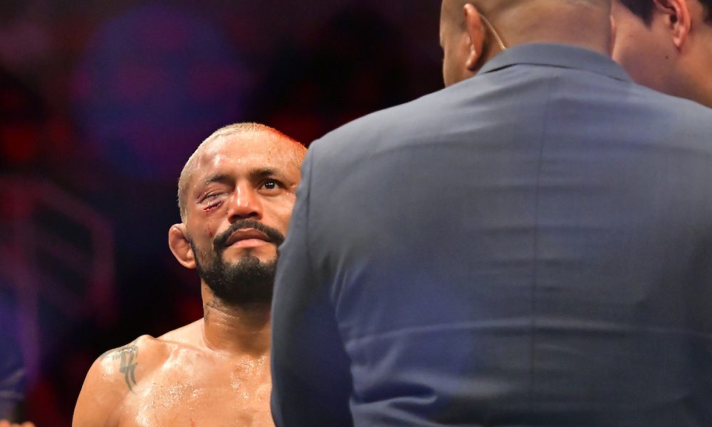 No último sábado (21), Deiveson Figueiredo subiu no octógono do UFC Rio para defender o cinturão linear peso-mosca contra Brandon Moreno, no quarto confronto disputado entre eles, uma marca inédita na organização. No terceiro round, o brasileiro recebeu um duro golpe do rival que rapidamente provocou um corte e um hematoma na região próxima ao seu olho direito, causando dificuldades para que ele pudesse enxergar. Após consulta com o médico do evento, o árbitro central da peleja optou por encerrar o duelo e dar a vitória ao mexicano, para revolta da torcida presente na ‘Jeunesse Arena’, que entendeu no momento que o oponente de ‘Daico’ teria aplicado um golpe ilegal (dedada no olho).