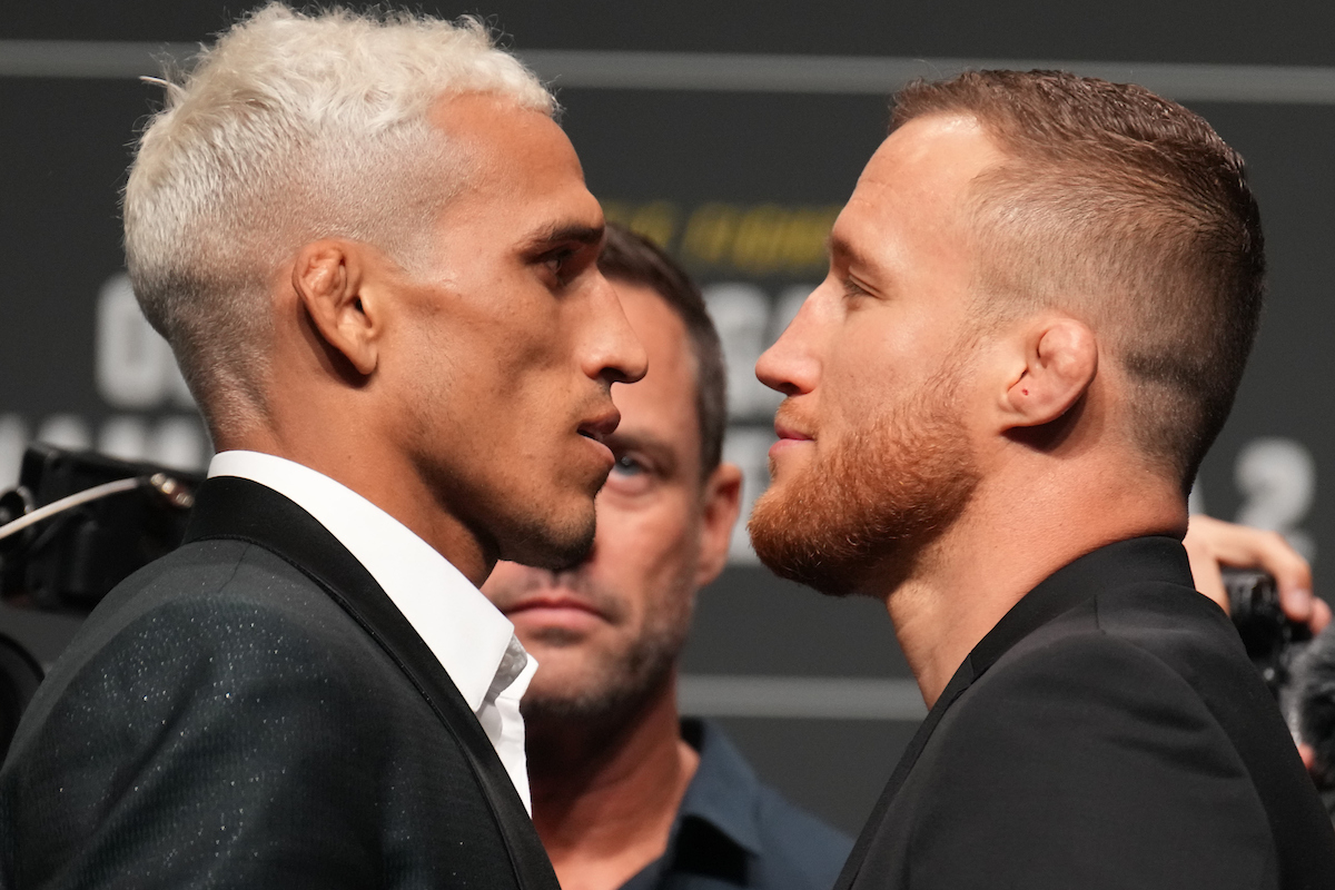 Durante a encarada, no entanto, o clima quase amistoso entre os pesos-leves deu lugar à tensão. Ainda que de forma respeitosa, sem nenhuma provocação, Charles e Justin trocaram olhares profundos ao se encontrarem frente a frente no centro do palco, até que o americano desviou a visão, girando seu corpo em direção ao público e interrompendo a formalidade.