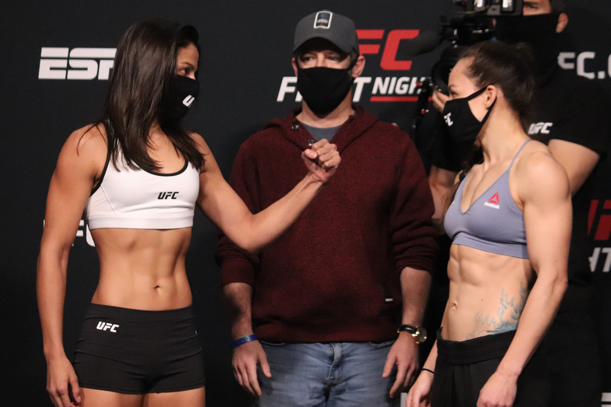 Sua rival Jinh Yu Frey, no entanto, vive situação dramática no Ultimate. A americana chegou com certa pompa à organização, já que era campeã do Invicta FC, mas disputou dois combates e perdeu ambos. Ao contrário da brasileira, a veterana de 35 anos possui um estilo de luta mais travado e que se destaca pelo aspecto físico.
