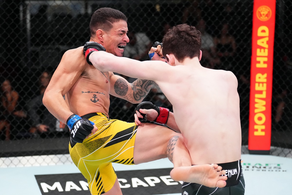 A segunda luta do UFC Vegas 55 poderia ser vista facilmente em um campeonato de grappling. Chase Hooper e Felipe ‘Cabocão’ fizeram um duelo praticamente todo voltado para a parte agarrada, com muitas variações de posições, durante três rounds e o americano saiu com a vitória por nocaute técnico no último assalto.