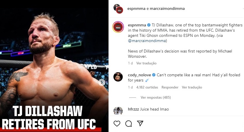 “Ele não pode competir como um homem de verdade! Ele enganou todos vocês por anos”, escreveu o ex-campeão do UFC em resposta a uma publicação no perfil oficial da ‘ESPN’ americana no ‘Instagram’.