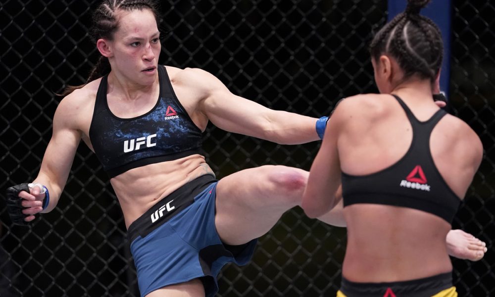Dominada no chão durante dois dos três assaltos disputados, a brasileira de 25 anos, promessa da equipe ‘Chute Boxe SP’, perdeu a oportunidade de anotar seu primeiro triunfo no UFC. Seu cartel como profissional agora é de cinco vitórias e três derrotas.