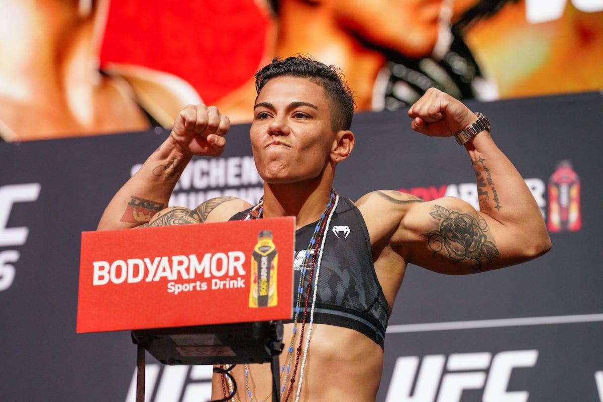 Jéssica Andrade, de 32 anos, é uma veterana do MMA e atua no UFC desde 2013. Pela empresa, a antiga campeã do peso-palha e ex-desafiante ao título do peso-mosca superou atletas como Amanda Lemos, Angela Hill, Cláudia Gadelha, Karolina Kowalkiewicz, Katlyn Chookagian, Larissa Pacheco, Mackenzie Dern, Marina Rodriguez, Raquel Pennington, Rose Namajunas e Tecia Torres. No esporte, a brasileira construiu um cartel composto por 26 vitórias e 12 derrotas.